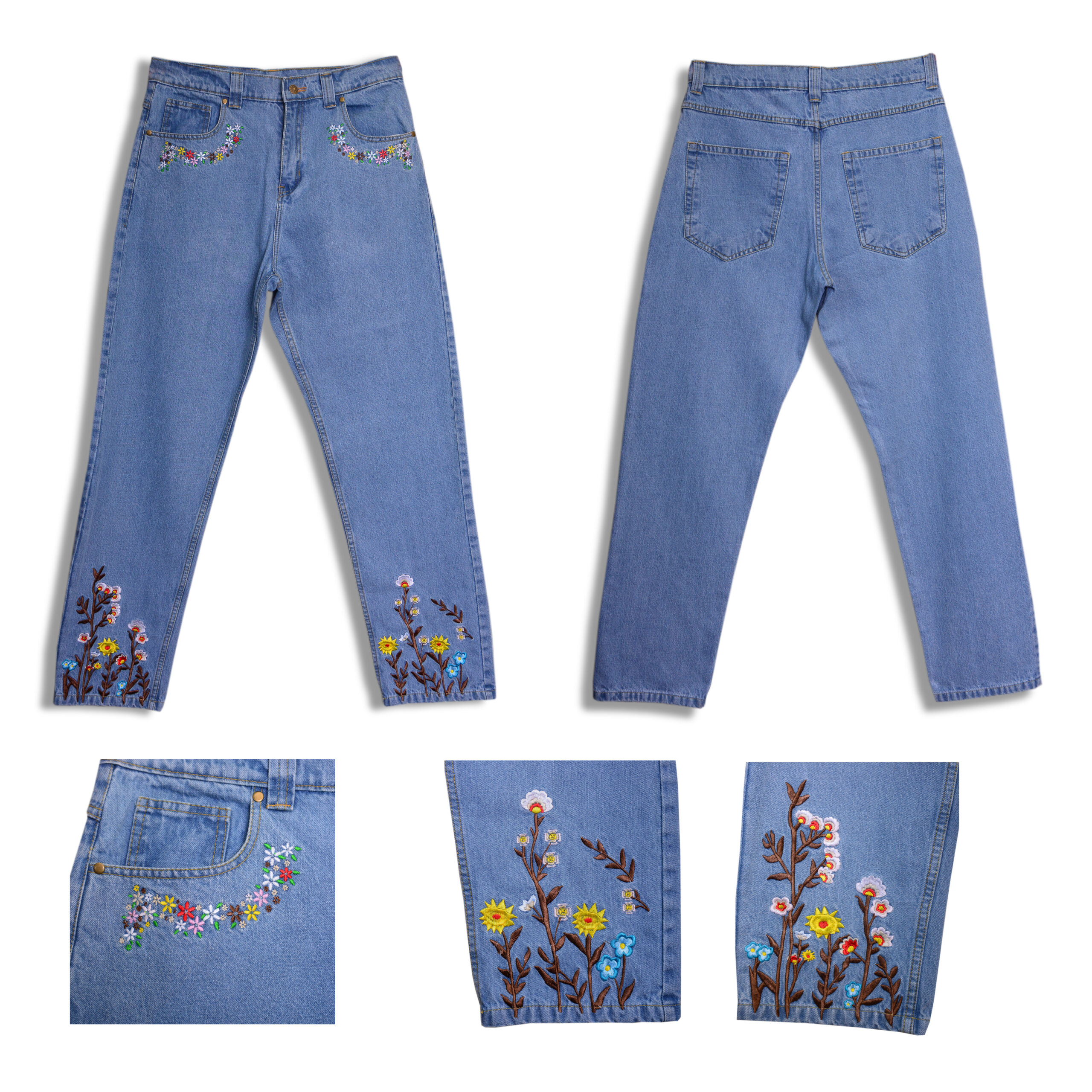 Add character to your everyday wardrobe with the Embroidered Edge Denim, designed for those who love timeless fashion with a creative edge. Crafted from premium-quality denim, these jeans provide durability, comfort, and breathability for all-day wear. The standout feature is the intricate floral embroidery placed along the edges and pocket areas, giving the denim a handcrafted, elegant appeal.